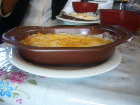 母がオーブンあたためてエビドリアを入れてました。