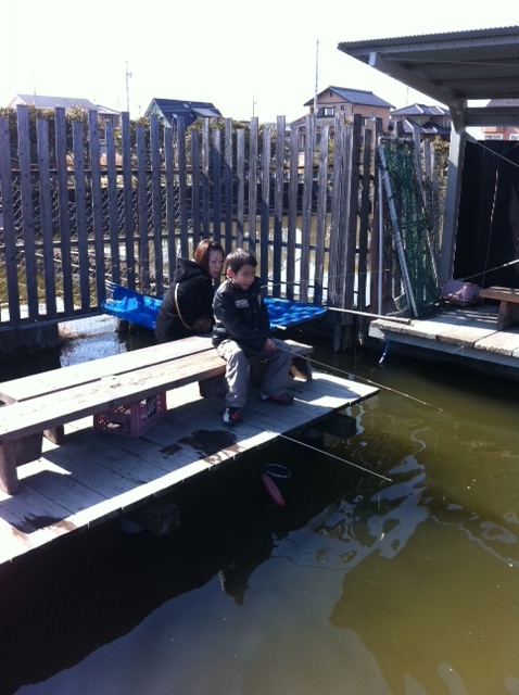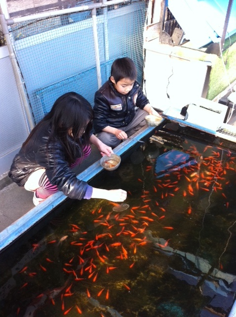 ここ、金魚の釣堀があるんです。