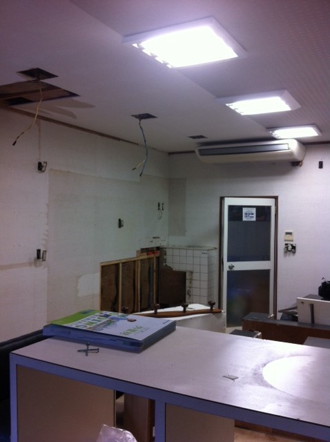 仮店舗は電気もついてもう営業できる状態まできました
