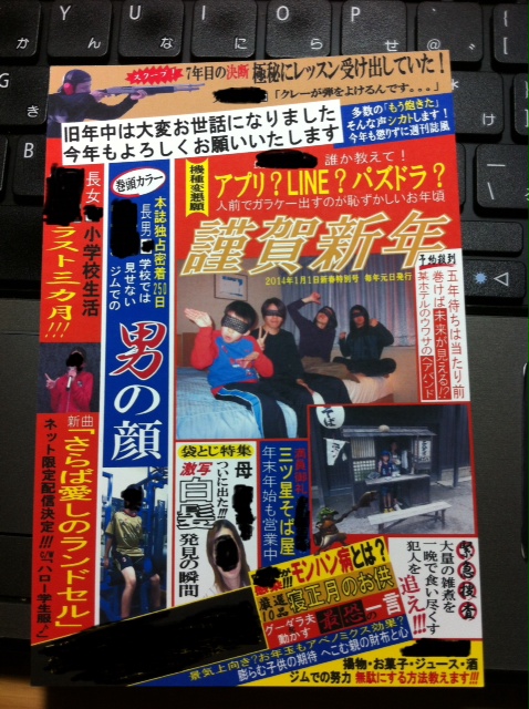 ここ数年、週刊誌風です。これ、インパクトがあって好評なんですが、実は作るのすごく簡単なんです冷や汗 (顔)写真と四角と文字並べただけですから冷や汗 (顔)しかもベースができてるので写真・文字・色を変えるだけウッシッシ (顔)しかし時間かかるんです。何に時間かかるかと言えば・・・ネタですげっそり (顔)ネタさえ決まれば形にするのは楽なんですが。。。