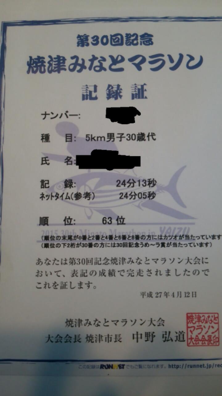 焼津みなとマラソンに参加~2015年4月12日 in (インチ) いつものボクの日記 by レター理容室 お客さんと盛り上がり焼津みなとマラソンに参加してきました~ ○練習2回 ○準備運動ナシ ○寝不足 ○二日酔い ○便意MAX という悪条件の中、無事完走! しかもけっこうな好タイム! すげー苦しかったです。 もう二度とマラソンには参加しません! 以上、静岡市葵区新伝馬の理容店Cut Room レターでした。